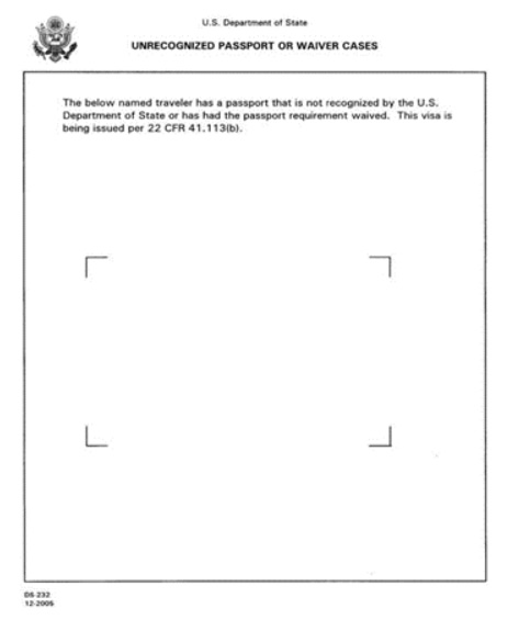 Unrecognized Passport or Waiver Cases When Visa is Not Placed in Passport
