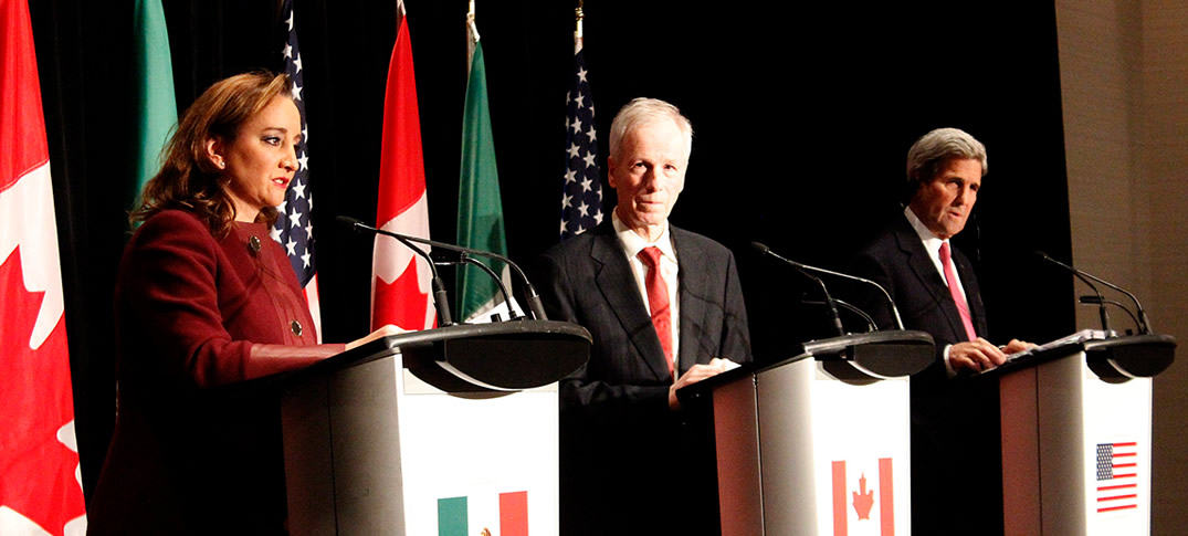 Los Cancilleres de América del Norte sostuvieron una Reunión de Trabajo en Quebec, Canadá. La canciller Claudia Ruiz Massieu, el secretario John Kerry de Estados Unidos y Stéphan Dion de Canadá se reunieron para evaluar temas relacionados con cambio climático, medio ambiente, cooperación energética, asuntos globales y regionales, así como seguridad y prosperidad en la región.